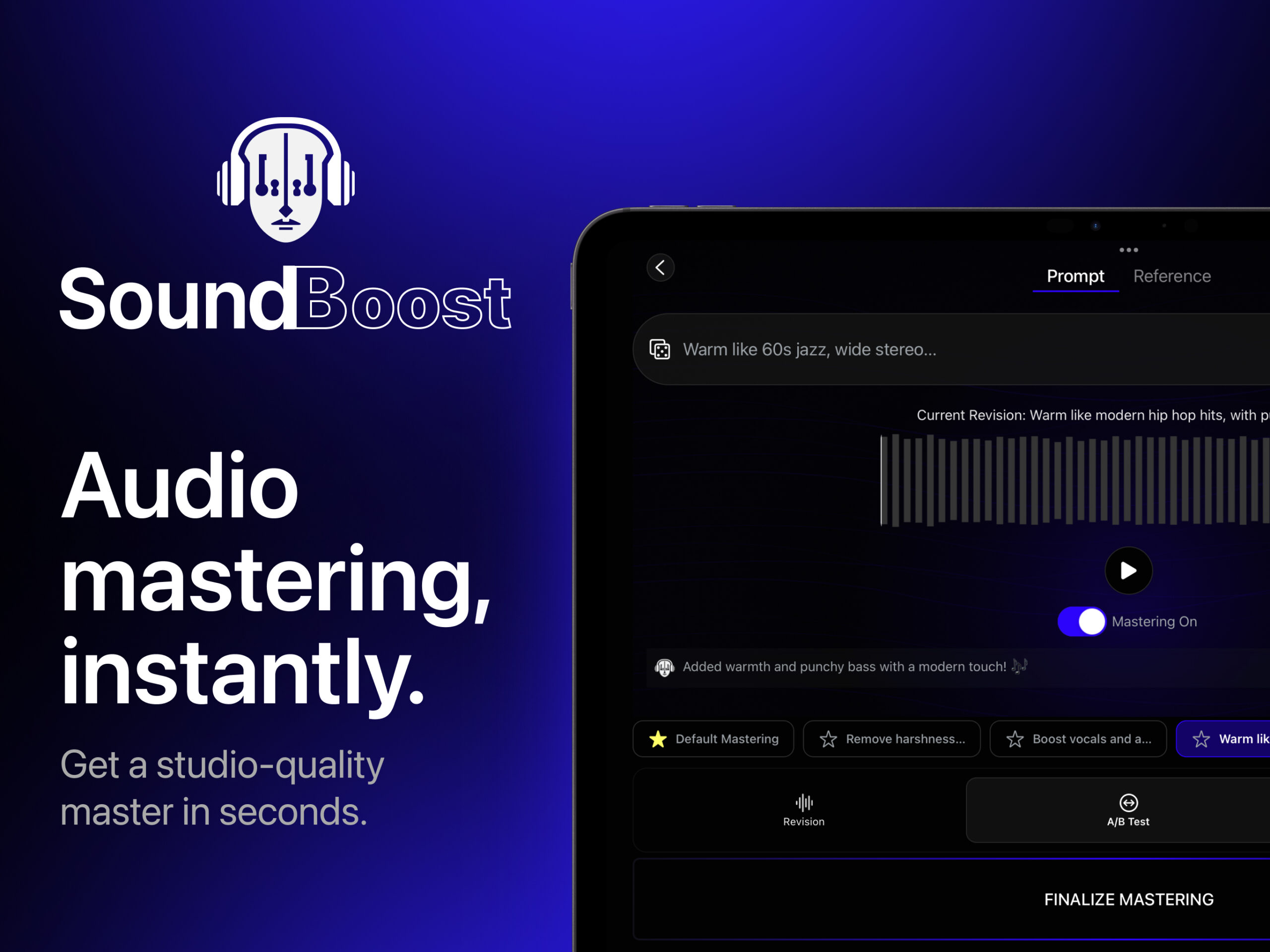 Your tracks deserve to sound their best, no matter where you are. SoundBoost makes that possible.